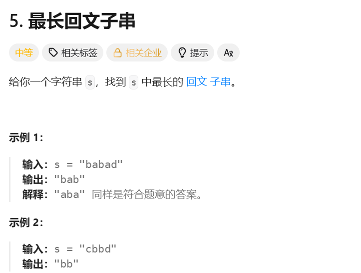 **思路:**使用中心扩展算法,首先固定一个中心点 i。然后从这个中心点开始,向两边拓展,假设向两边拓展的指针分别名为 left,right,因为最长的回文子串可能是奇数长度也可能是偶数长度,当它是奇数时,起始状态 i == left == right;当它是偶数时,起始状态 i == left,right = left + 1。