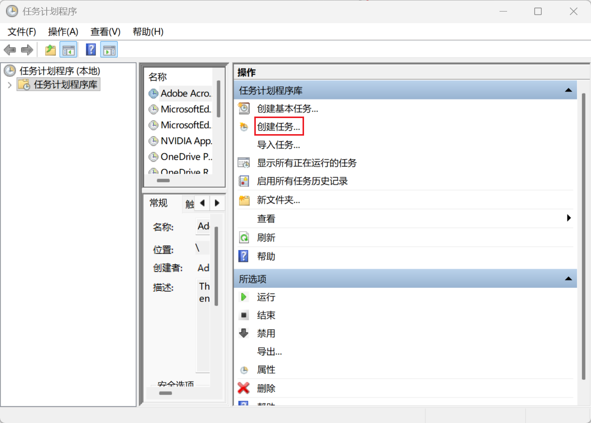 4、「触发器」: - 新建 → 开始任务:启动时 → 确定