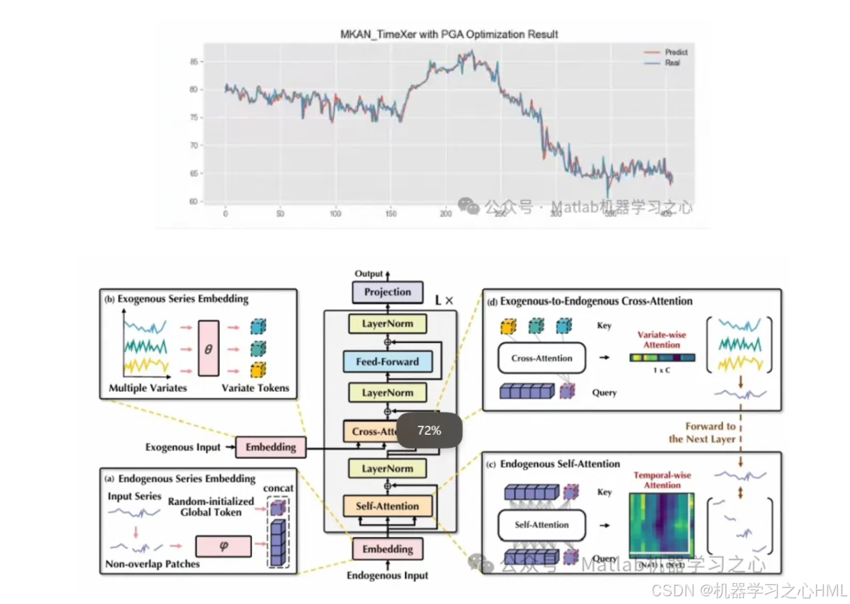 本模型集成PGA、MKAN与TimeXer三大前沿组件,构建了一套完整且创新的时间序列预测框架,基于PyTorch架构实现并提供Python代码。该框架融合了优化算法、卷积特征提取与Transformer架构的精髓,具备以下核心特点: