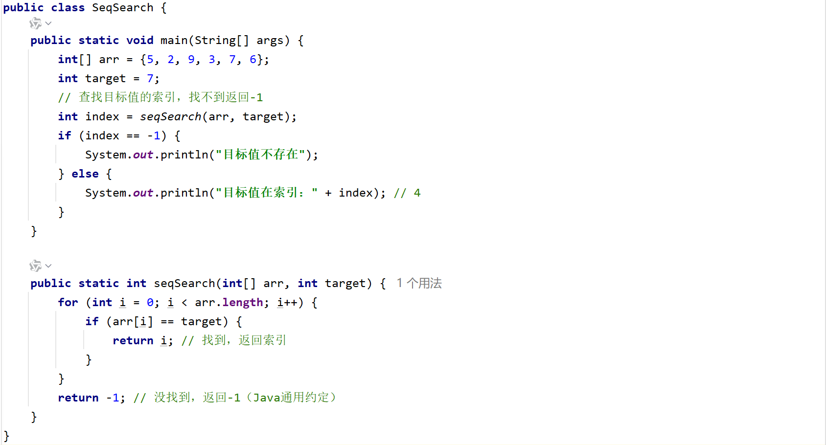 从数组第一个数开始,逐个遍历,直到找到目标值或遍历结束。