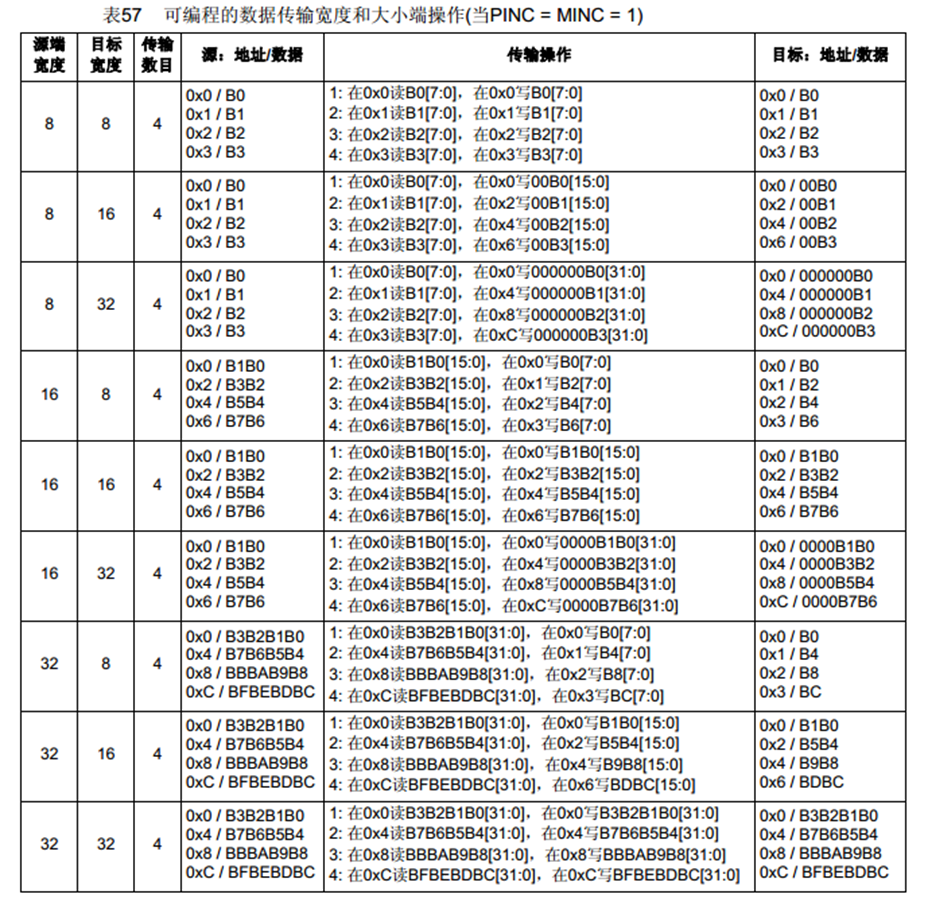 •每个通道都支持软件触发和特定的硬件触发,从存储器转运到存储器用软件触发,外设寄存器和存储器之间转运用硬件触发。