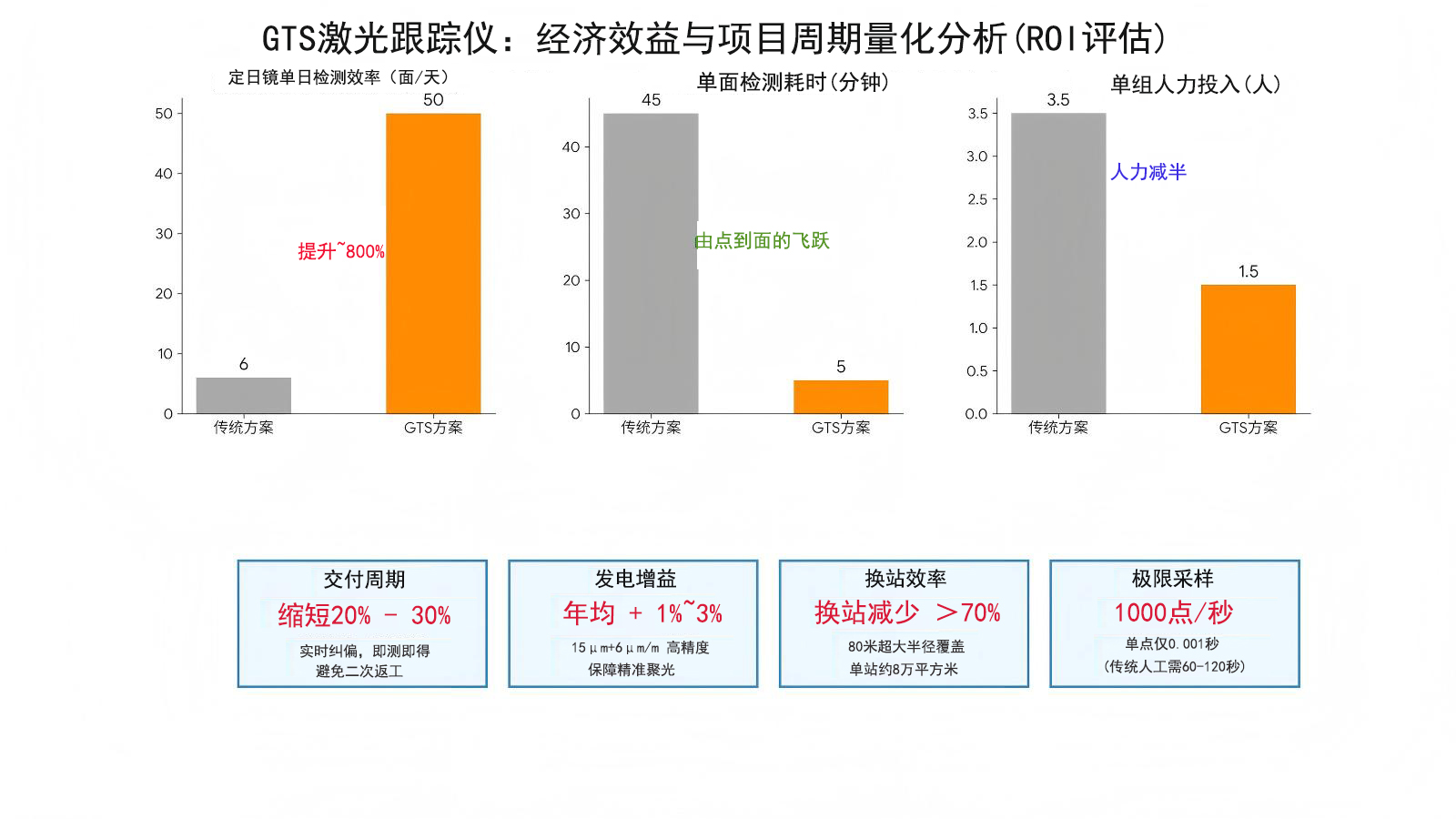 这里有一份为您准备的量化分析附件,旨在通过对比数据直观展示GTS 激光跟踪仪为太阳能发电项目带来的经济效益与效率提升。