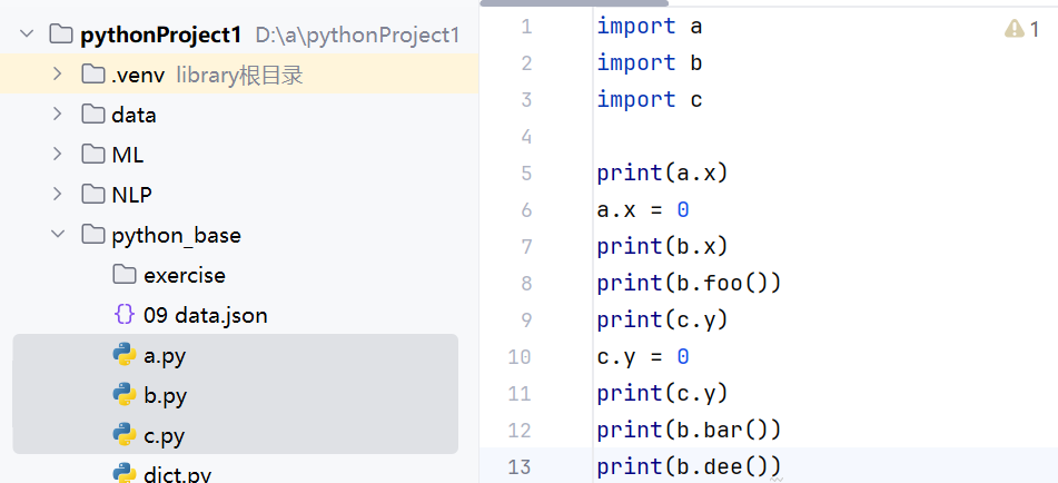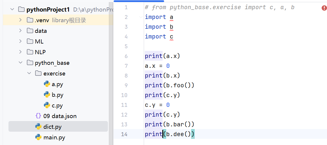 如果只在b中运行:它不会报错,因为a,b,c三个模块在同一个文件夹中,且它所处目录是exercise