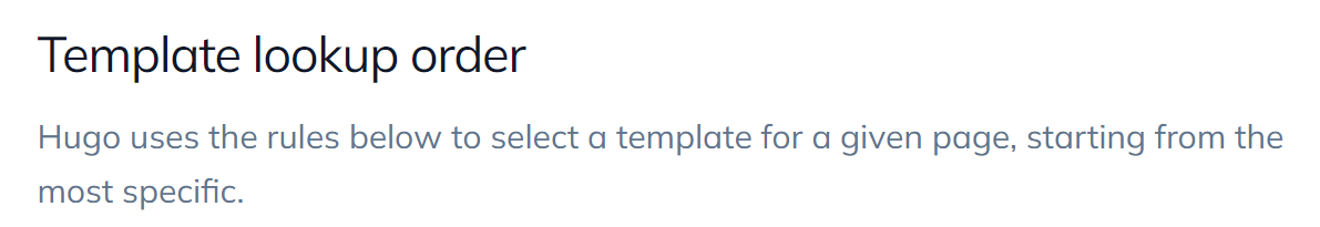 Hugo 在渲染某个页面(比如首页 /,文章页 /ubuntu/hello,分类页 categories/hugo/)时,会按照一套规则去查找模板(最具体 most specific → 最通用 most common)
