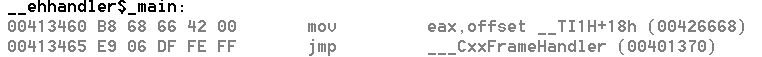 00401015 68 60 34 41 00 push offset __ehhandler$_main (00413460)