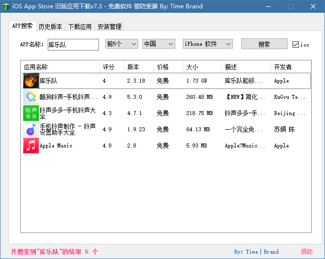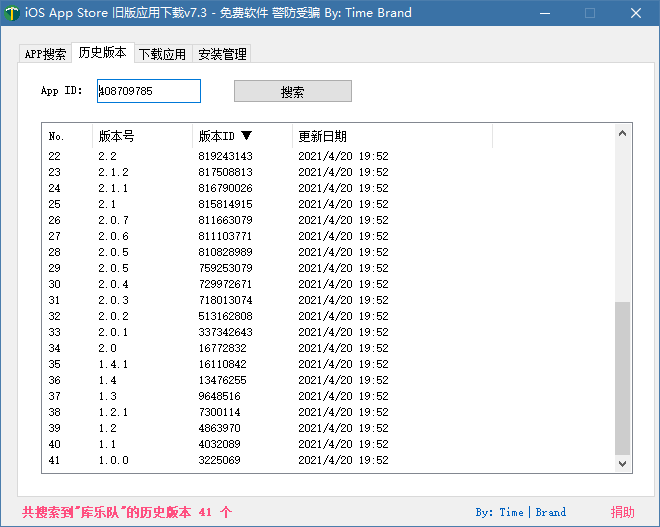打开【iOS 任意版本号 APP 下载工具】。输入 app 名称,在搜索结果中找到要下载的 app,双击后,会自动切换到【历史版本】