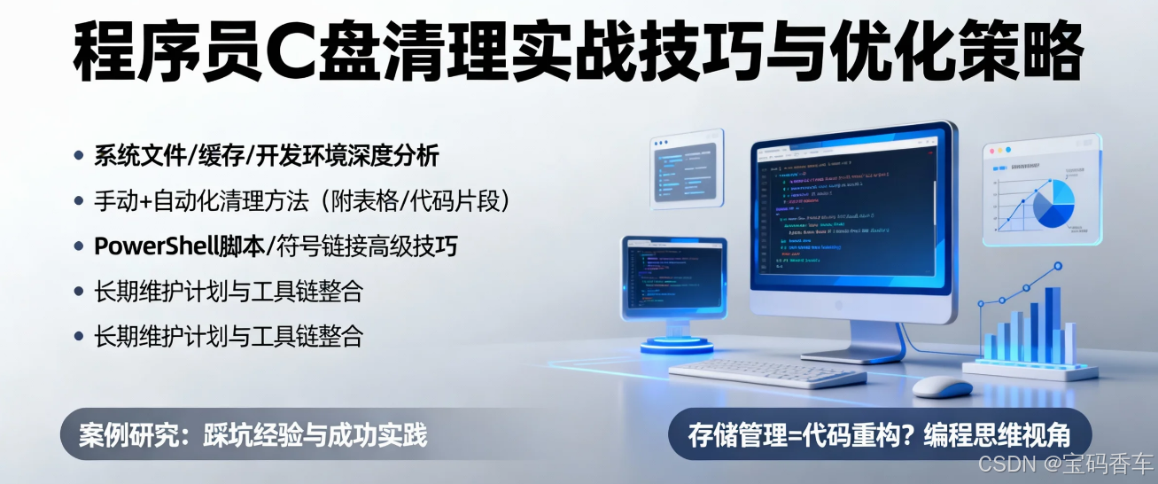 C盘清理远非一次性任务,而是持续的系统优化过程。作为程序员,我们应将存储空间管理视为开发工作流的一部分,通过工具和习惯的结合,释放宝贵空间,提升工作效率。记住,一个整洁的C盘,不仅是数字卫生的体现,更是创意迸发的基础------毕竟,谁也不想在debug时被"磁盘空间不足"打断灵感吧?