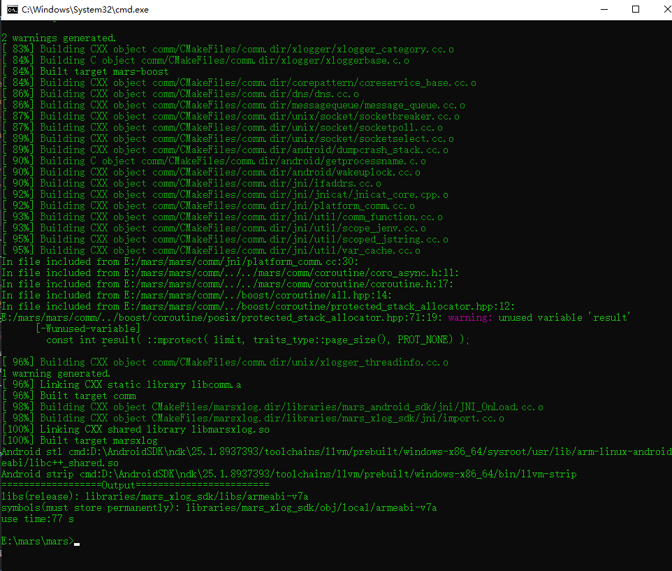 这里在marsxlog和marsstn里的add_library之后加上了 set_target_properties(${SELF_LIB_NAME} PROPERTIES LINK_FLAGS "-Wl,-z,max-page-size=16384")
