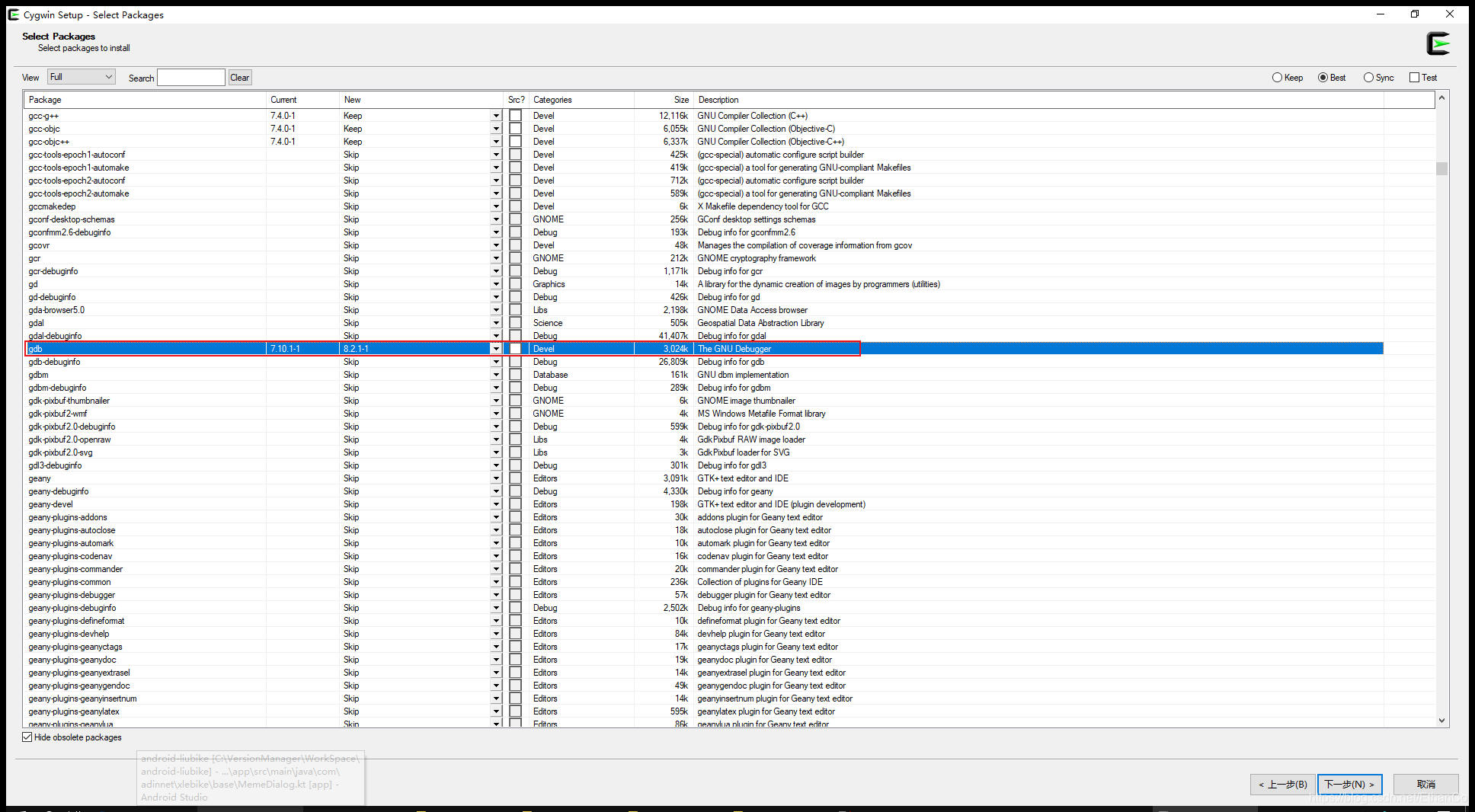 可以选择自己需要的包进行安装,这里需要make, gcc gdb