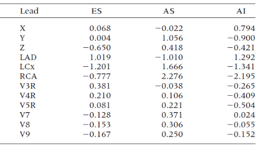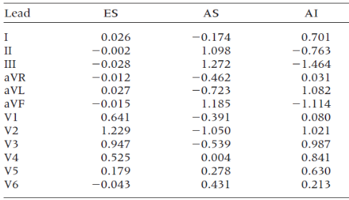 其中包括ES、AS和Al随时间变化电压与适用于当前导联的固定系数,这些系数共同定义了一个三维导联向量,每个心电图导联均对应一个导联向量。
