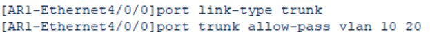 - 把g0/0/1接口划分到vlan10,access类型;g0/0/1接口划分到vlan20,access类型