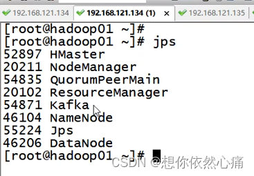 分发完成后,并根据当前节点的情况修改"broker.id"和"host.name*参数,随后还需要使用"source /etc/profile"使环境变量生效。至此,Kafka集群配置完毕。结果如下图所示: