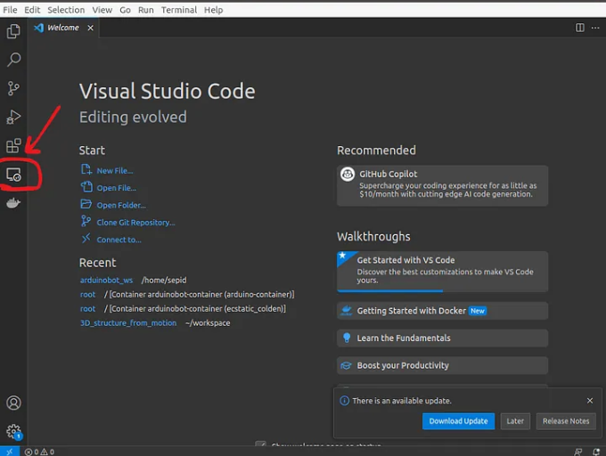 现在,在 Visual Studio Code 中导航到"Remote Explorer"选项卡: