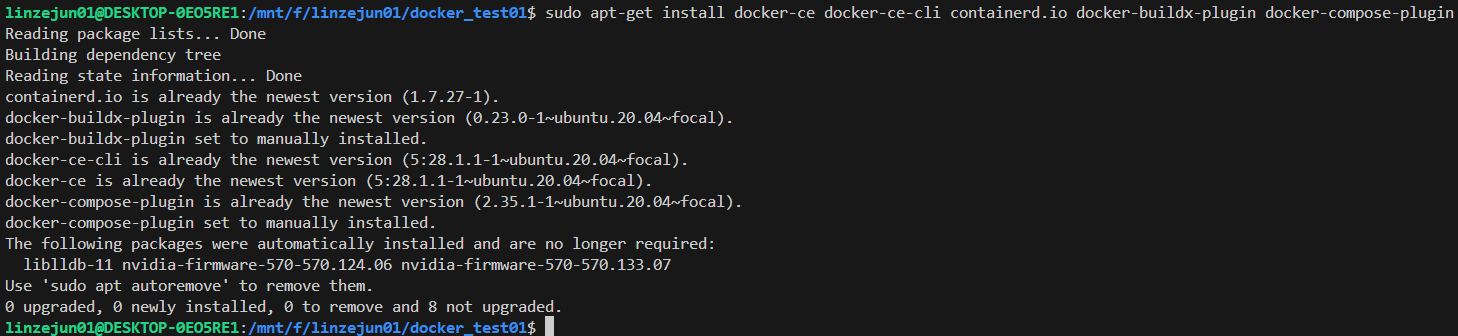 sudo apt updatesudo apt-get install docker-ce docker-ce-cli containerd.io docker-buildx-plugin docker-compose-plugin