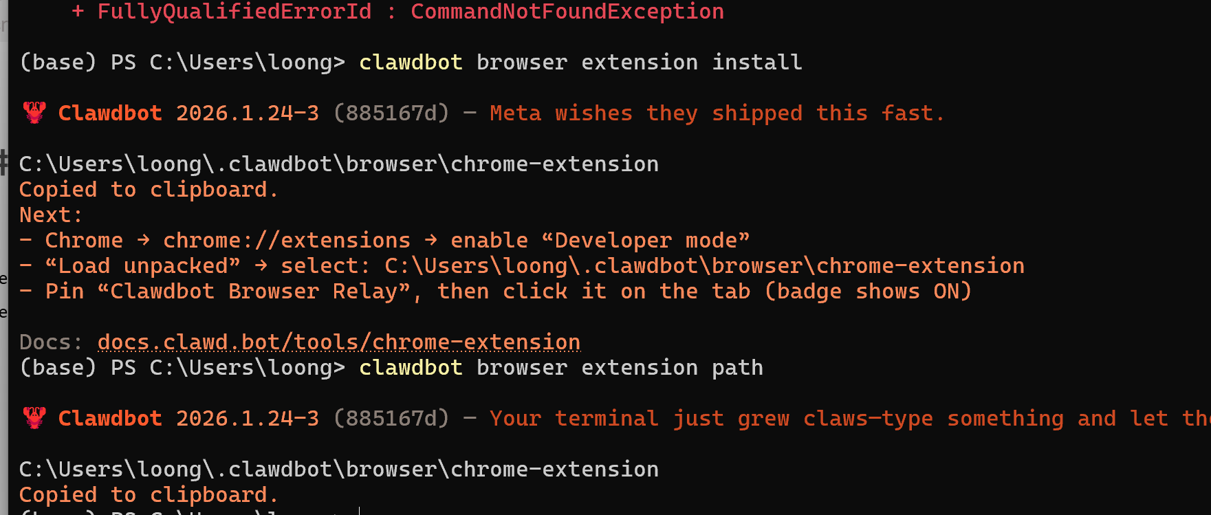 clawdbot browser extension install #安装
