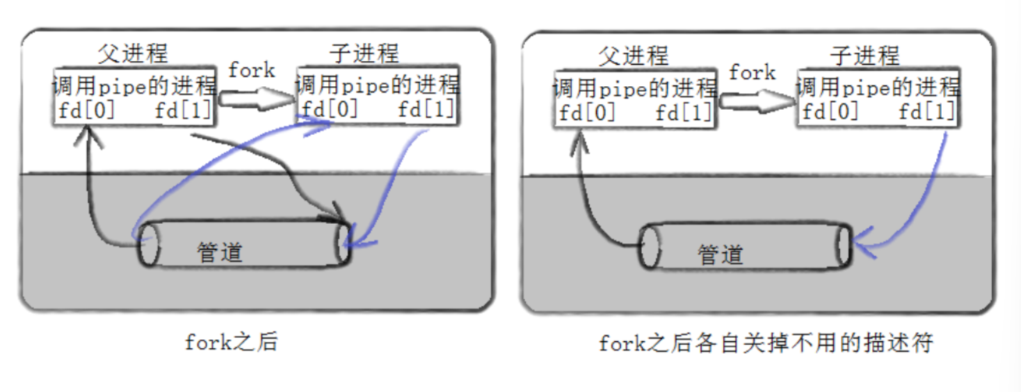 int fd[2]; // 管道的两个文件描述符:fd[0]读端,fd[1]写端