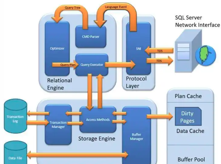 关系引擎(Relational Engine)又被称为查询处理器(Query Processor)。它包含能够决定执行什么样的查询以及如何做到最优查询。它负责从存储引擎(Storage Engine)请求数据并处理返回的数据。