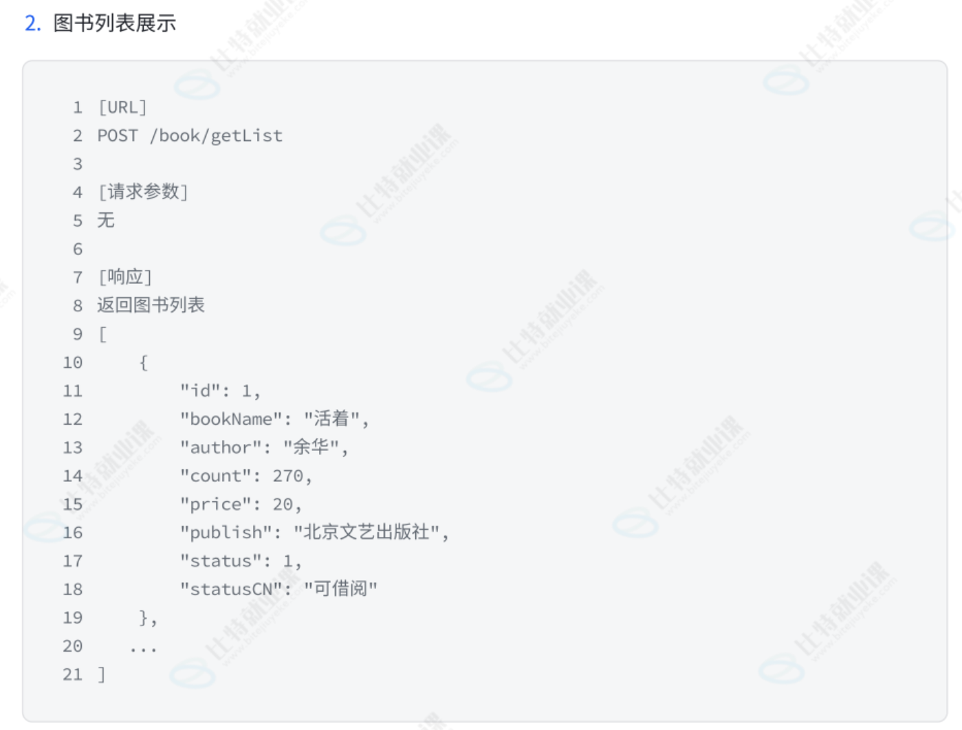 - [1.2 图书列表展示接口:](#1.2 图书列表展示接口:)