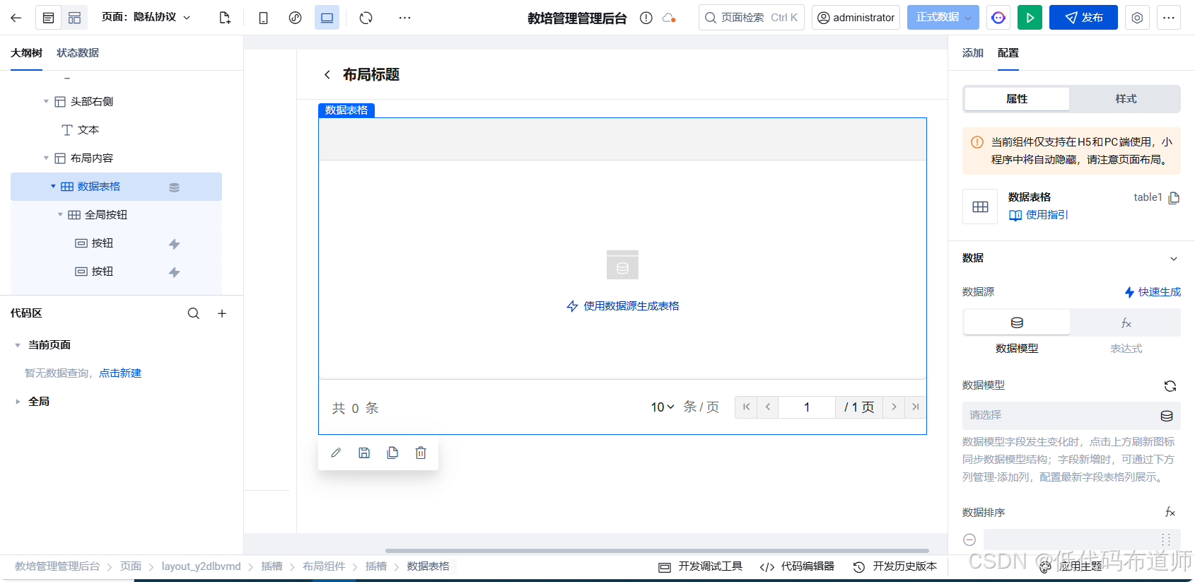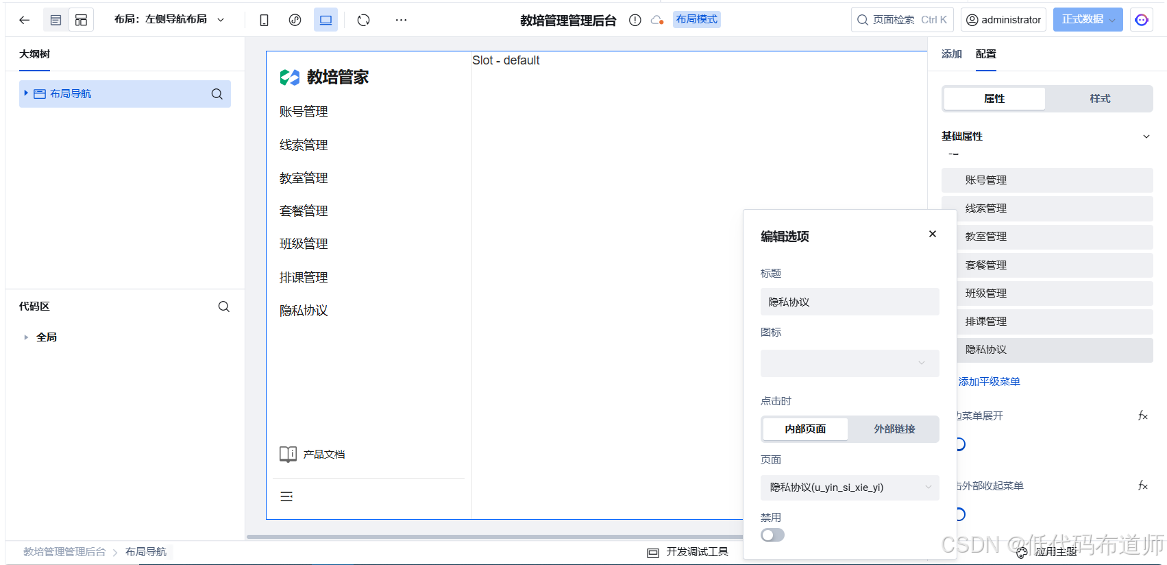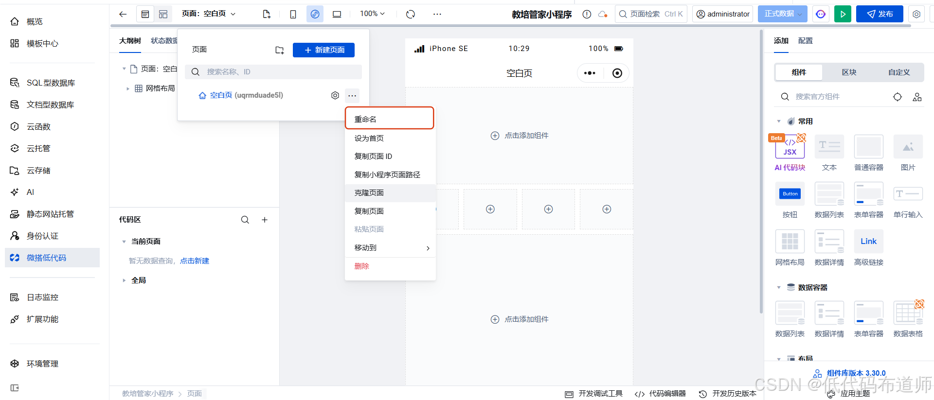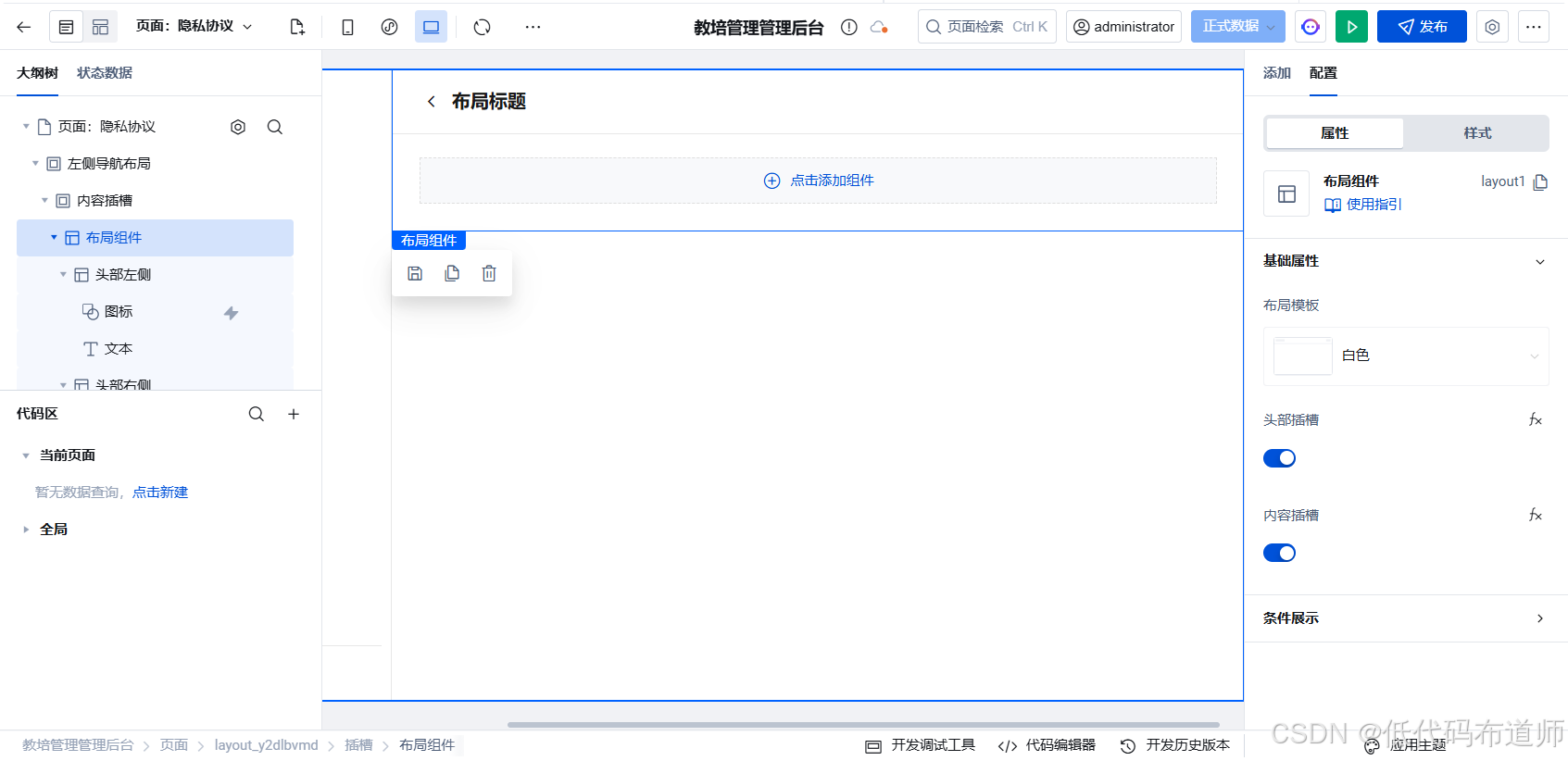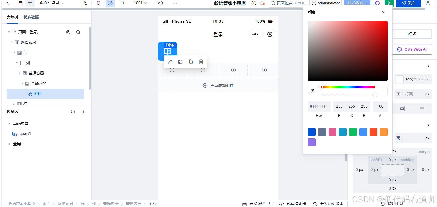 在微搭低代码中,我们需要通过"自定义方法"来实现点击登录按钮时的逻辑校验。