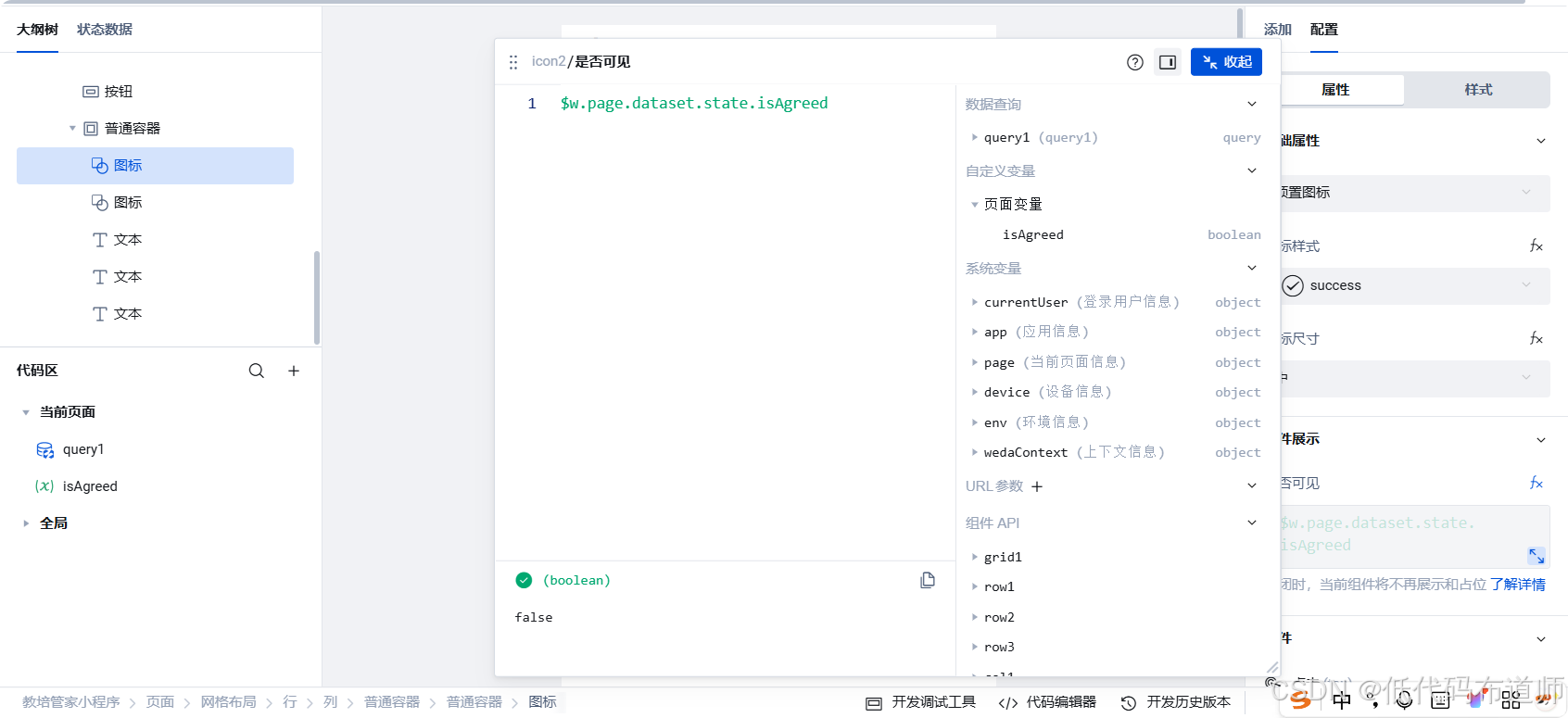在普通容器里添加两个图标组件,一个设置为圆圈,一个设置为对号