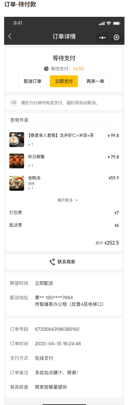 java/** * 历史订单查询 * @param dto * @return */ @Override public PageResult historyOrders(OrdersPageQueryDTO dto) { // 设置分页参数 PageHelper.startPage(dto.getPage(), dto.getPageSize()); // 调用Mapper dto.setUserId(BaseContext.getCurrentId()); Page<Orders> page = ordersMapper.list(dto); // 返回PageResult return new PageResult(page.getTotal(), page.getResult()); }分页查询Service层依旧三步走,设置分页参数(请求参数DTO里面封装了传过来),调用Mapper(调用前补充字段userId,作为list方法的条件之一,只看用户自己历史订单。确定最后查出来的每条数据是用Orders类进行封装,Page泛型就写Orders,由于我这里把Orders的主表字段和联表字段orderDetailList的全部属性一次性查了封装,所以Service层比较简单,后续在商家端订单搜索接口实现遇到相似需求我会采用分两次SQL查询封装的操作,后一种方法利于Mapper层方法的复用,不过Service层逻辑会稍微复杂一些),返回新建的PageResult(这里page.getResult()其实就是得到了List<Orders>,所以Page的泛型就是查出来的每行数据究竟用什么封装,记住这一点分页查询就不会忘了)。