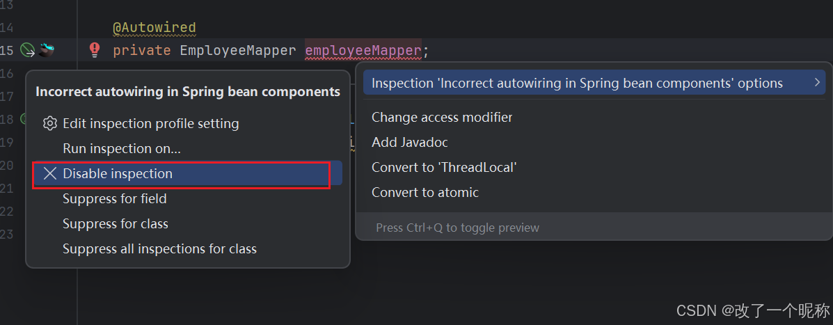 在IDEA的spring工程里,经常会遇到 Could not autowire. No beans of 'xxxx' type found 的错误提示。