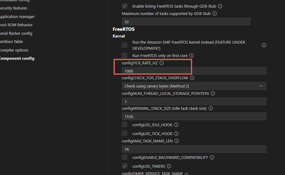 FreeRTOS节拍:将tick rate从100改为1000,使vTaskDelay(1000)对应1秒延迟