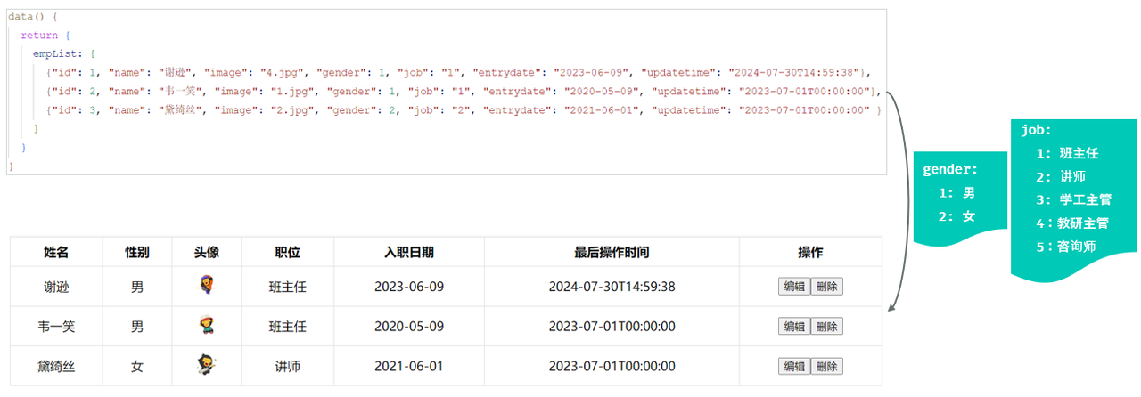 {"id": 1, "name": "谢逊", "image": "1.jpg", "gender": 1, "job": "班主任"},