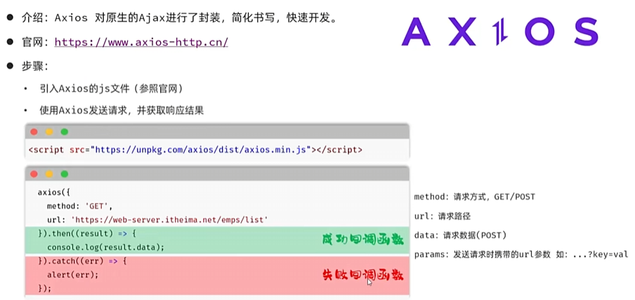 使用原生的Ajax请求的代码编写起来比较繁琐,更加简单的发送Ajax请求的技术Axios对原生的AJAX进行封装,简化书写。Axios官网是:https://www.axios-http.cn