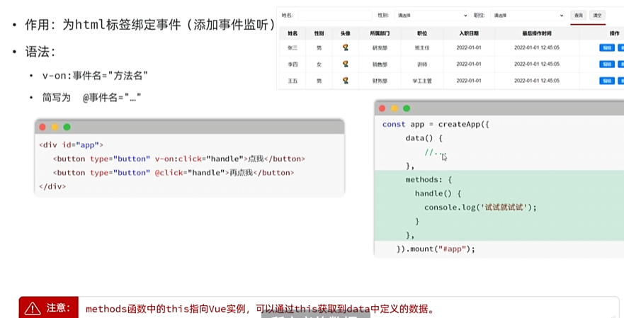 首先在return中定义原始的数组,属于用户看不懂的东西并且这个数组有个名字,然后在script中in这个名字表示要用Vue操作这个数组