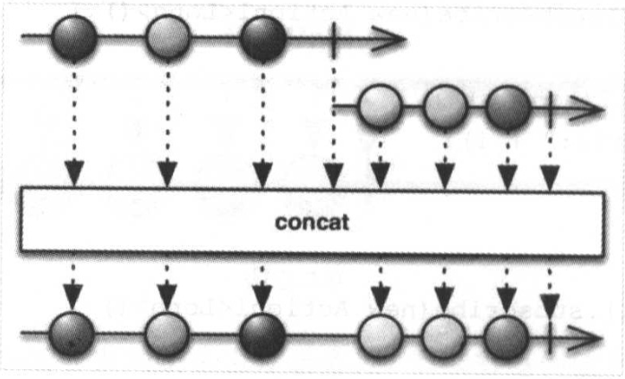 amb操作符可以将至多9个Observable结合起来,让它们竞争。哪个Observable首先发送了数据(包括onError和onComplete),就继续发送这个Observable的数据,其他Observable所发送的数据都会被丢弃,其示意图如图所示。
