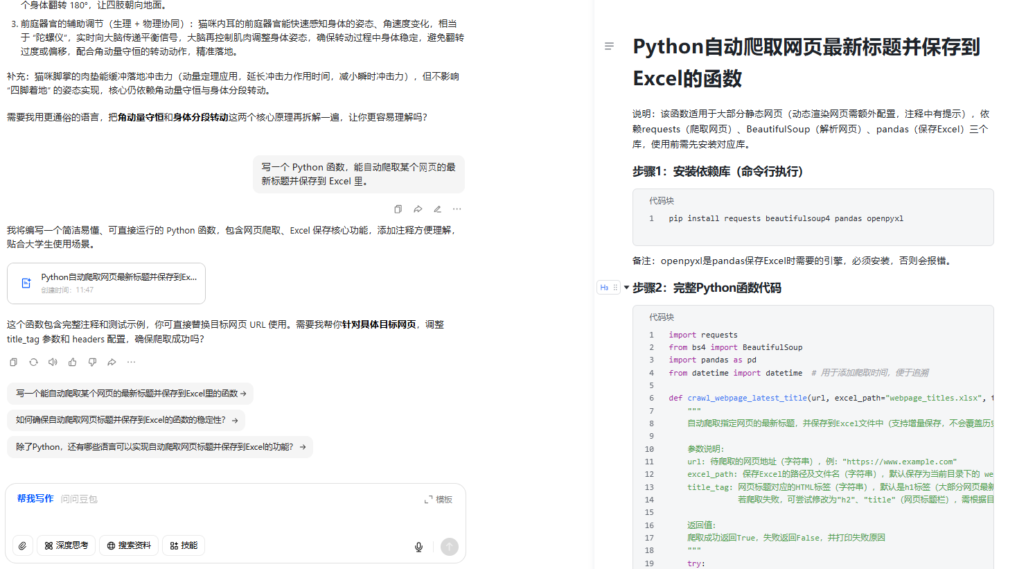 LLM 的能力早已突破 "文科" 范畴,进入了需要精确推理的 "理科" 领域。它能处理严格的逻辑问题,比如求解微分方程,也能将自然语言描述直接转化为可运行的代码。你只需说 "写一个 Python 函数,能自动爬取某个网页的最新标题并保存到 Excel",它就能瞬间生成代码,让 "想法" 到 "实现" 的距离缩短到几秒钟。