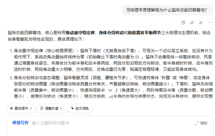 LLM 通过学习海量数据,将知识内在关联形成立体的知识网络,成为一个可对话的 "互联网知识库"。你可以问它 "用物理学原理解释为什么猫咪总能四脚着地",也可以让它 "对比古希腊哲学和春秋战国百家争鸣的异同"。它不仅能给出答案,还能进行类比和延伸,让知识的获取从 "检索" 变成 "对话"。