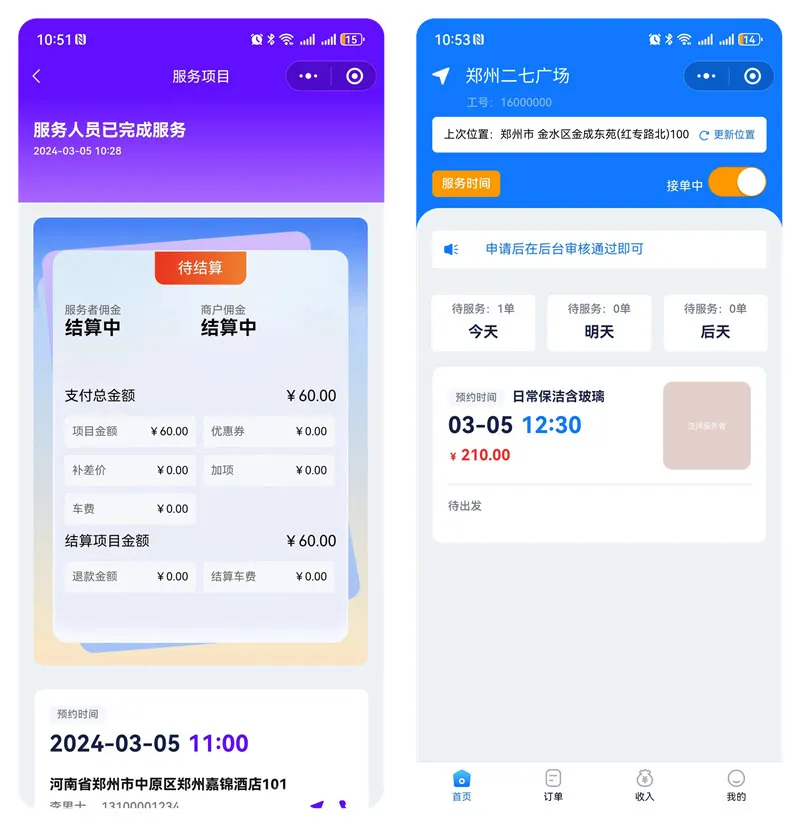 - 服务人员信息关联:订单中关联服务人员信息,用户可知晓为其服务的人员情况。