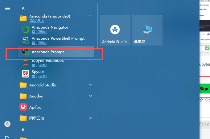 然后打开 Anaconda Prompt