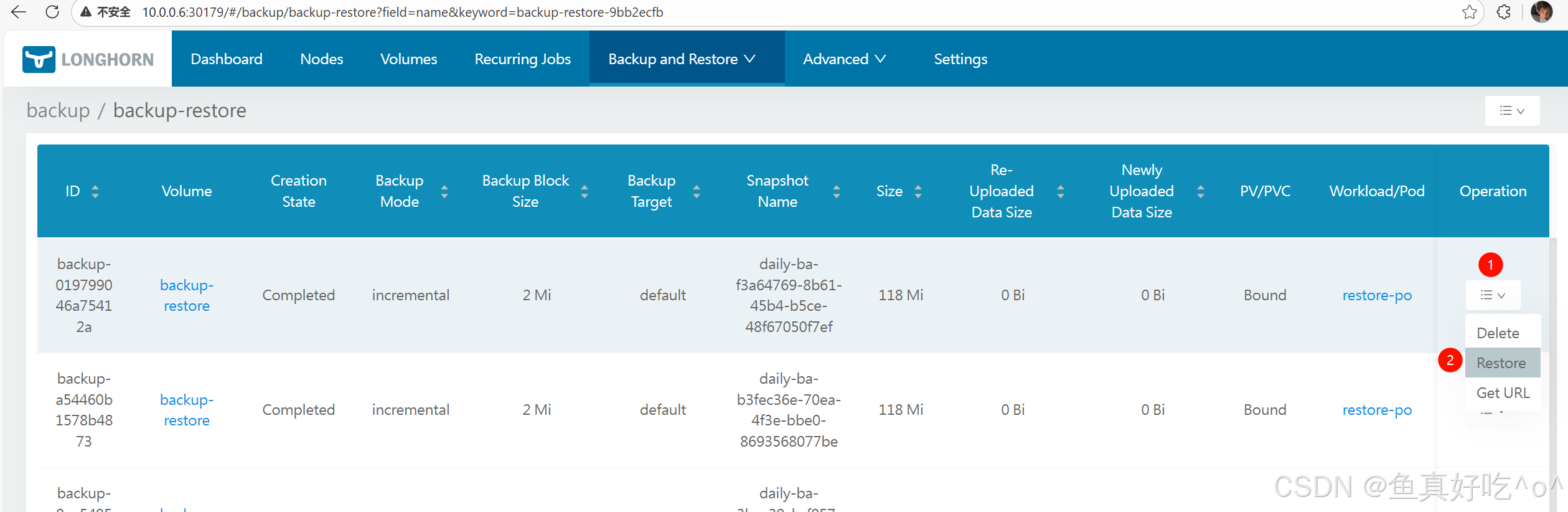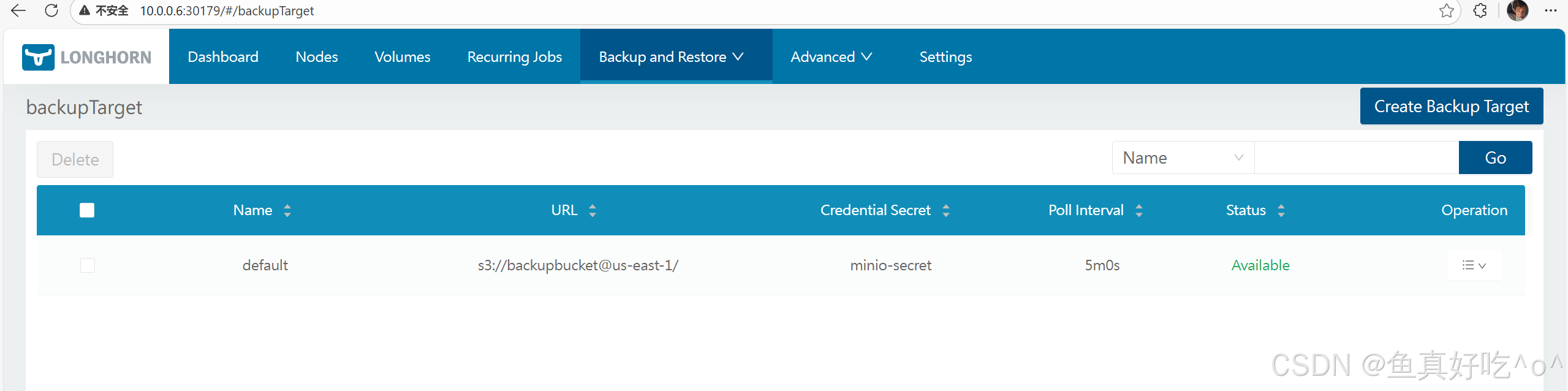 在 Longhorn UI 的 Backup 页面: