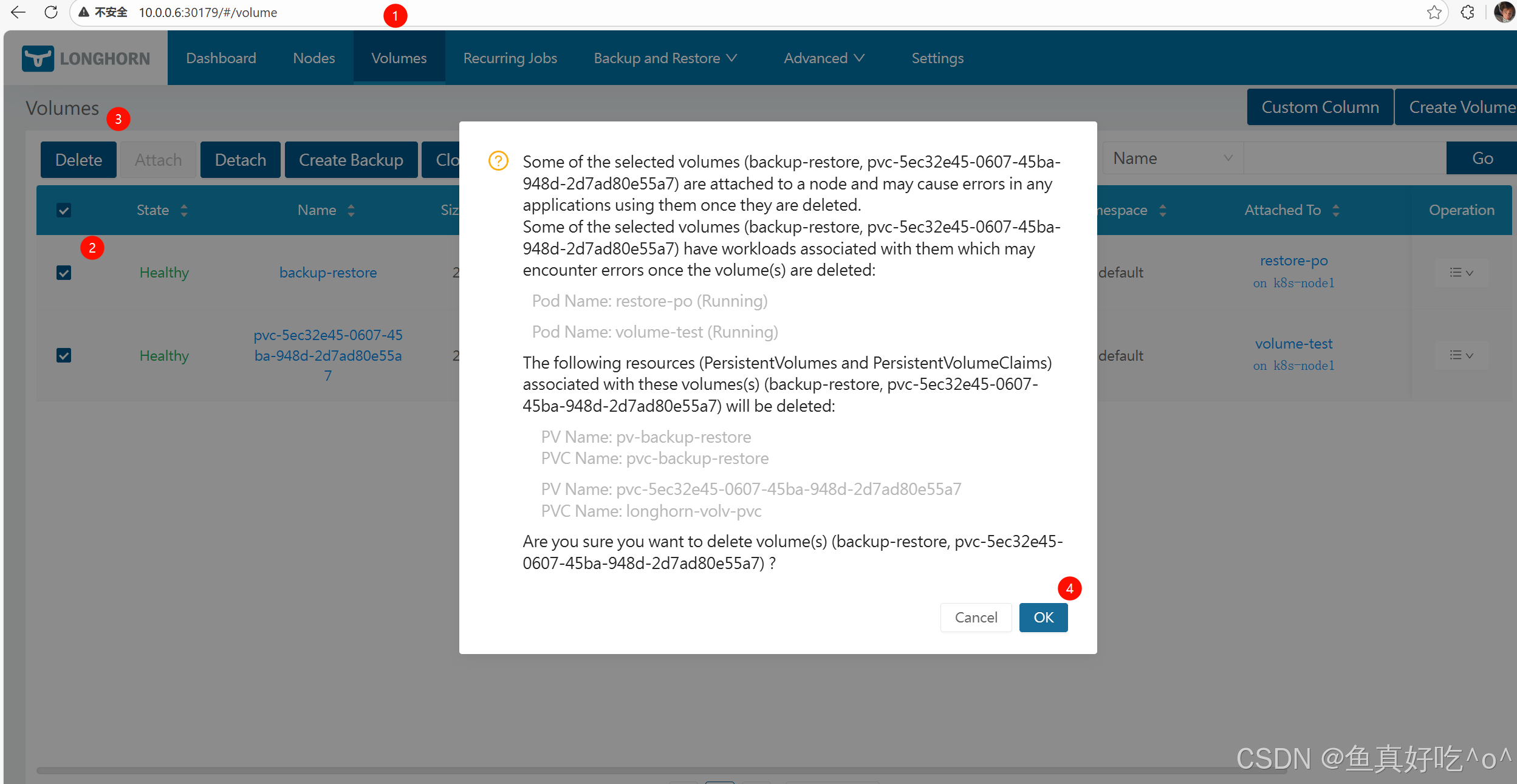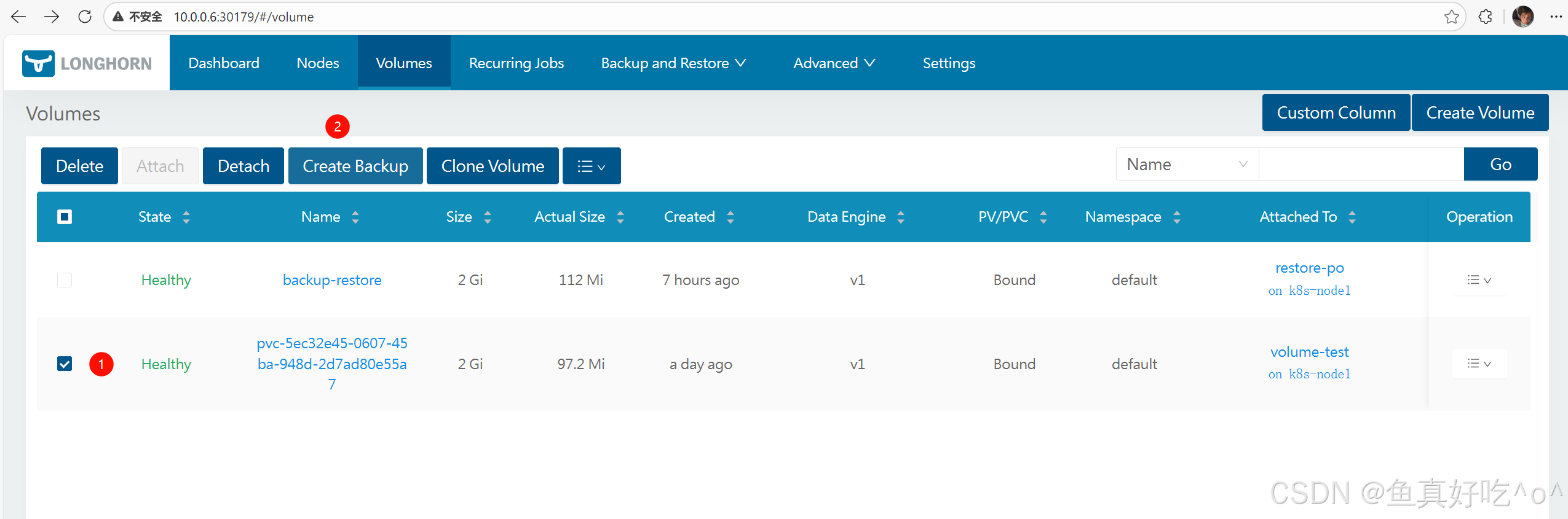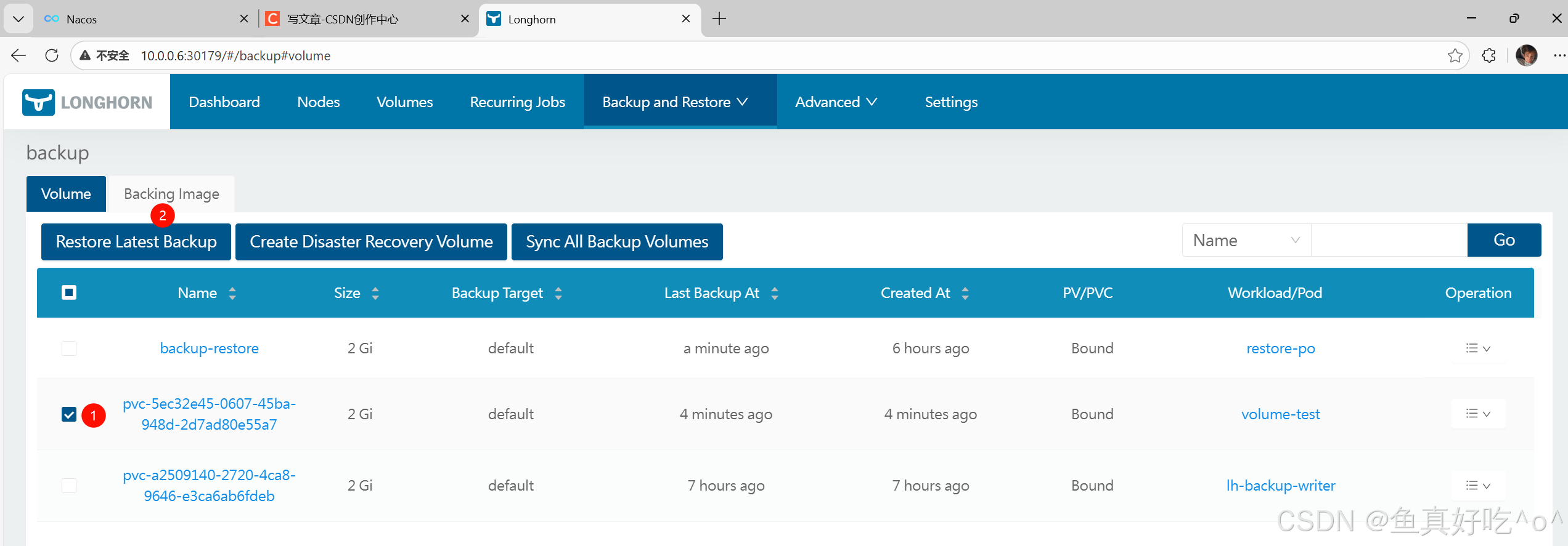 - 恢复备份生成 Longhorn 卷(Restore Volume)