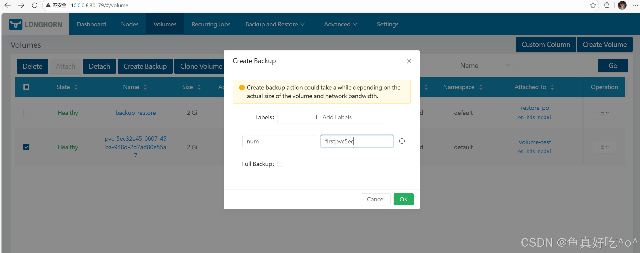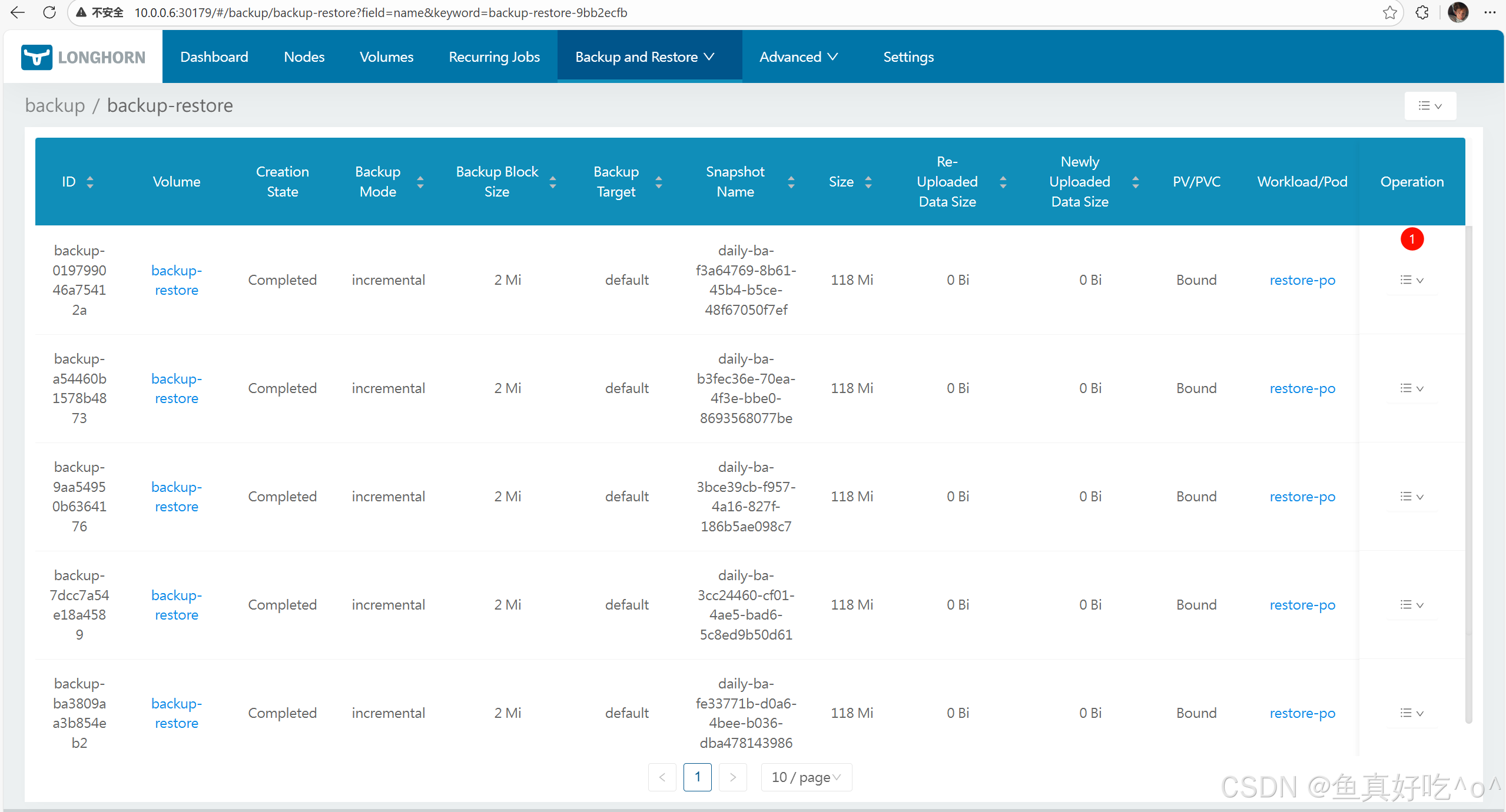 [root@k8s-master ~]# kubectl -n longhorn-system get backups.longhorn.io