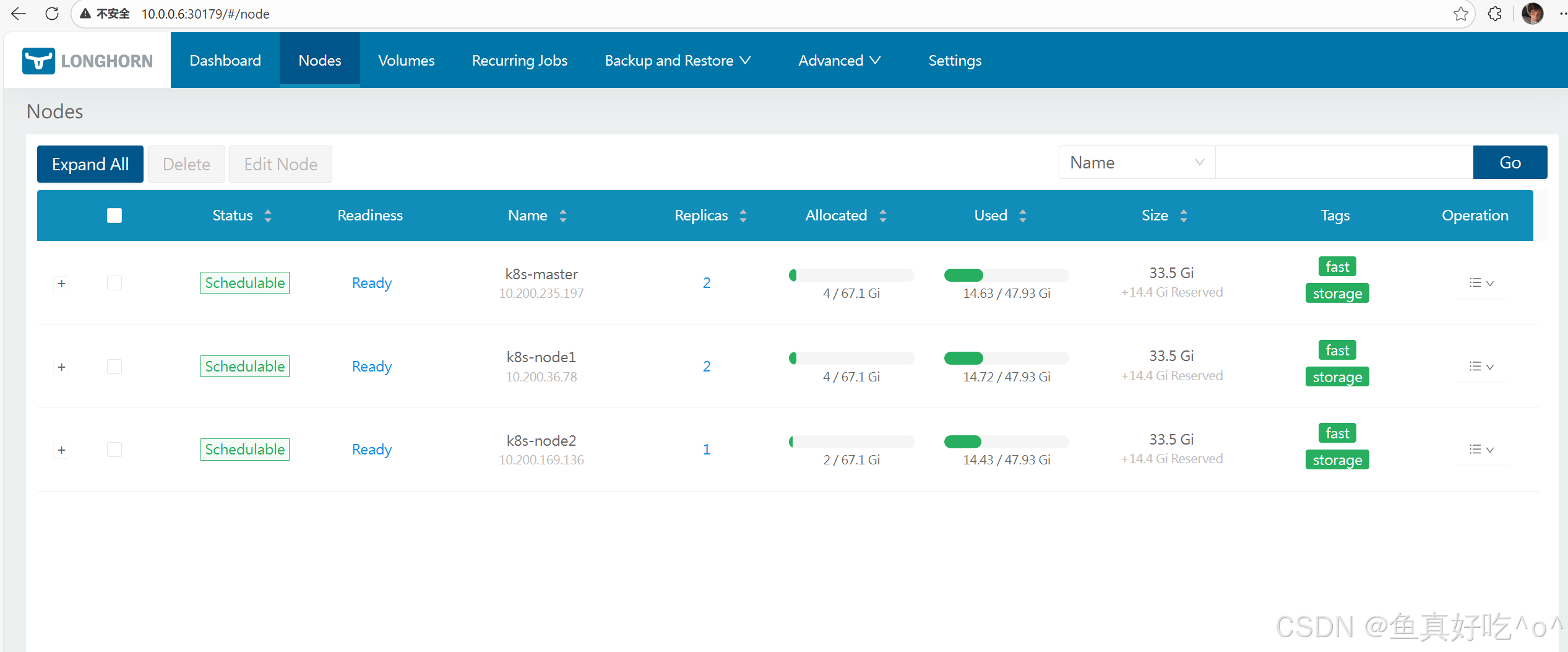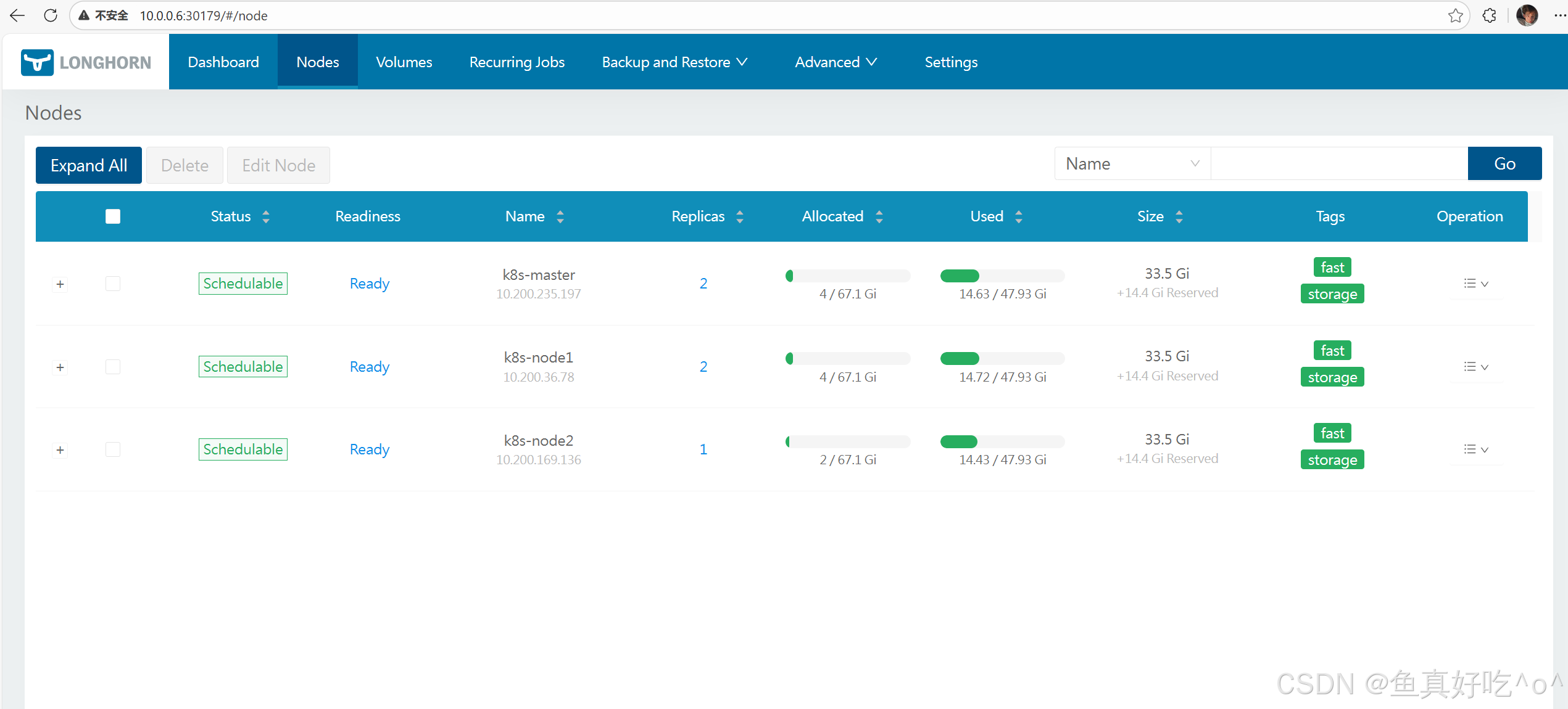 | Longhorn UI | Deployment(多个副本) | 提供 Web 图形界面,用于查看和管理 Longhorn 资源 |