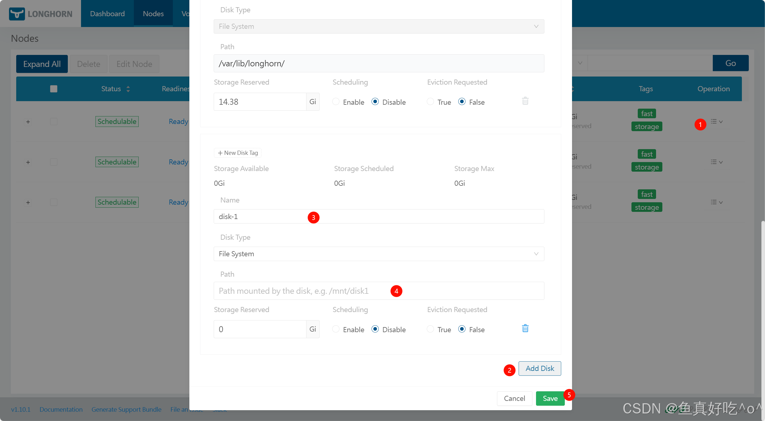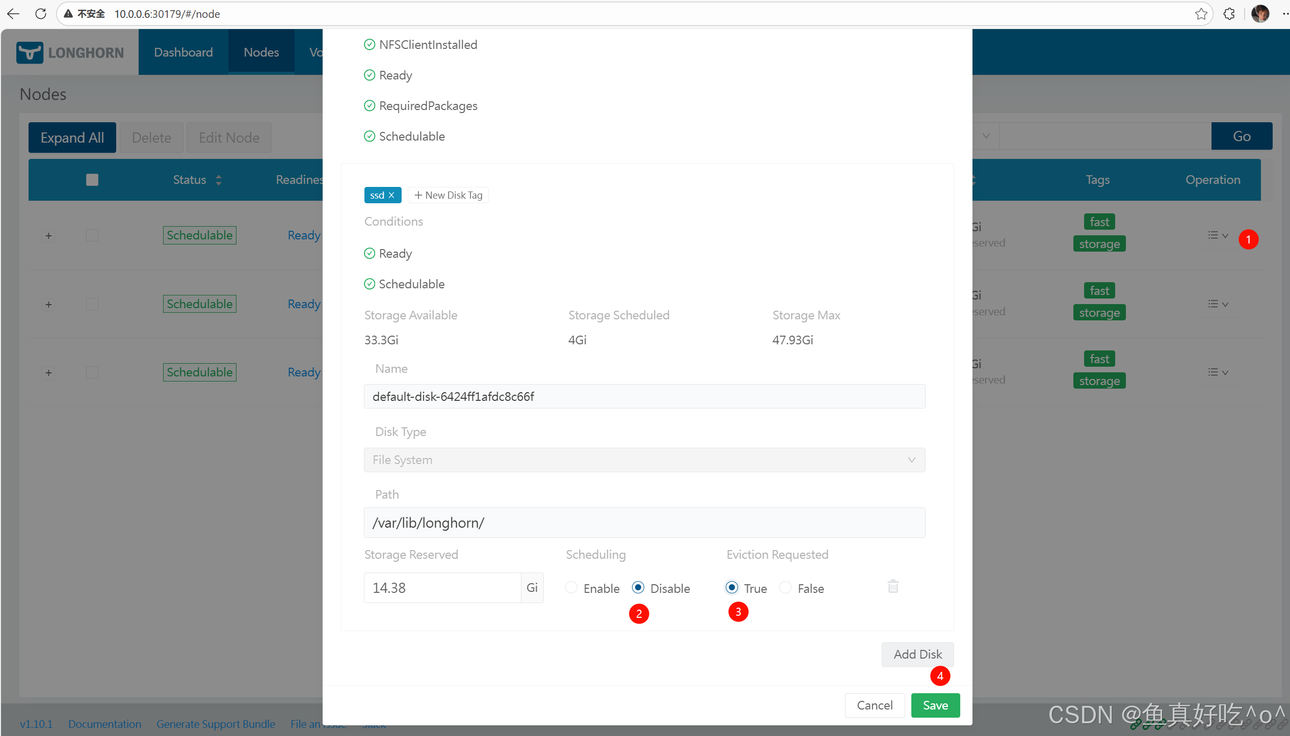 `Disabled`: Longhorn 卷不允许调度的磁盘/节点的总空间。