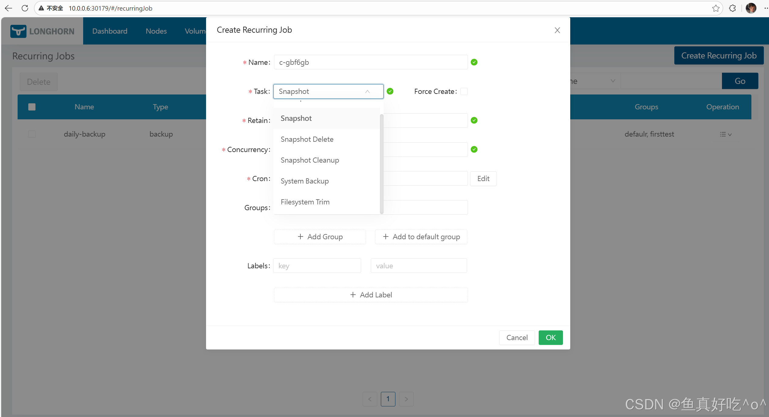在 Longhorn UI 进入 Volume → Recurring Jobs → 选择你创建的 group。