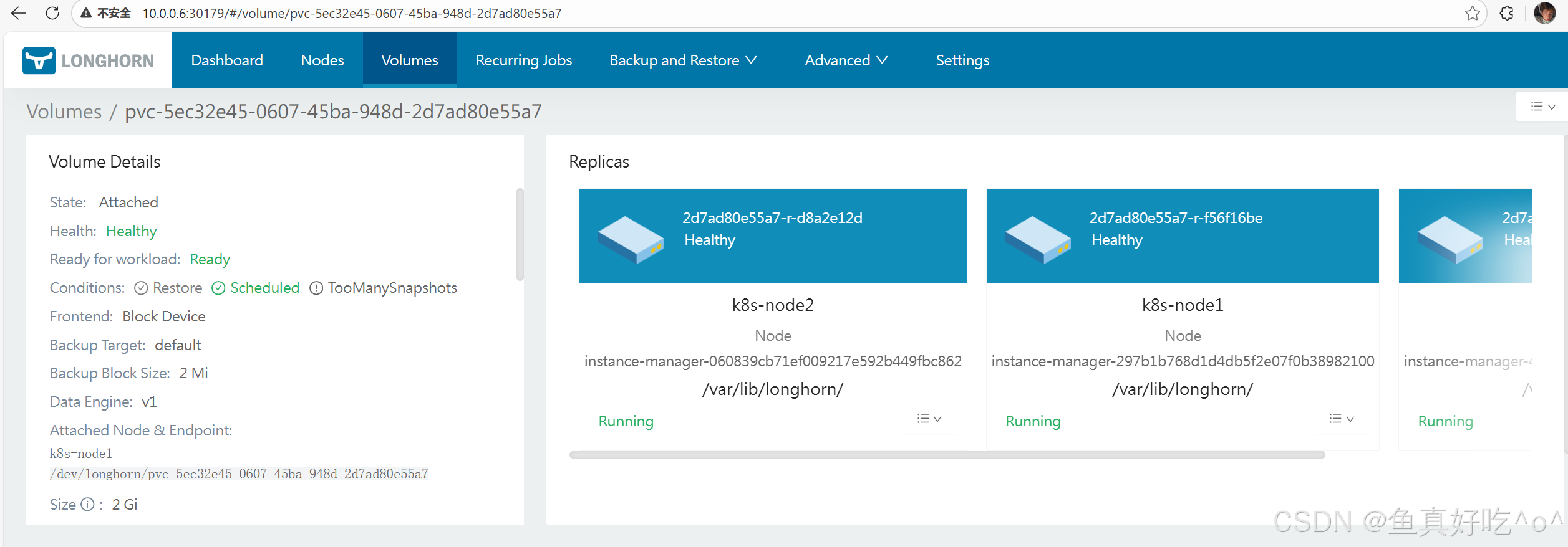 | Instance Manager | DaemonSet(每个节点一对) | 在节点上启动和管理引擎进程(engine)和副本进程(replica),负责实际的数据 I/O 和同步 |