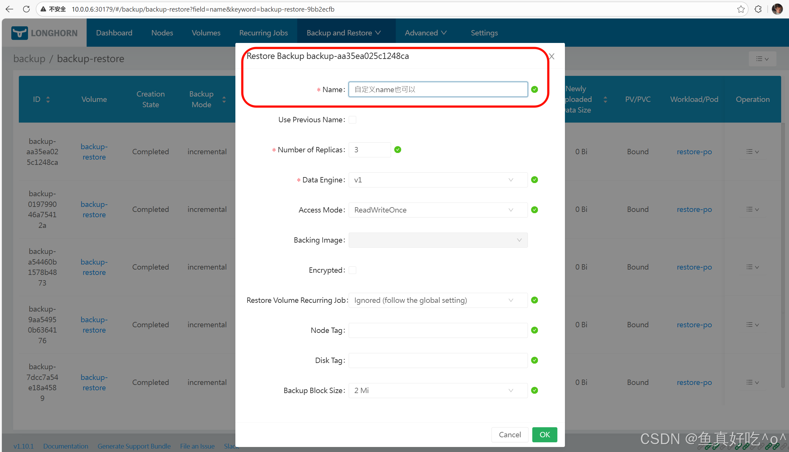 Longhorn 生成一个新卷(包含备份的数据)