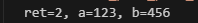 printf("ret=%d, a=%d, b=%d\n", ret, a, b);