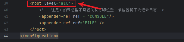 注意:all全部打印;error则只打印error及以上的级别日志;不想打印为off。