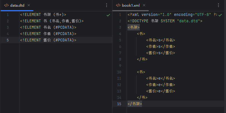 注意:dtd,可以约束XML文件的编写;不能约束具体的数据类型。