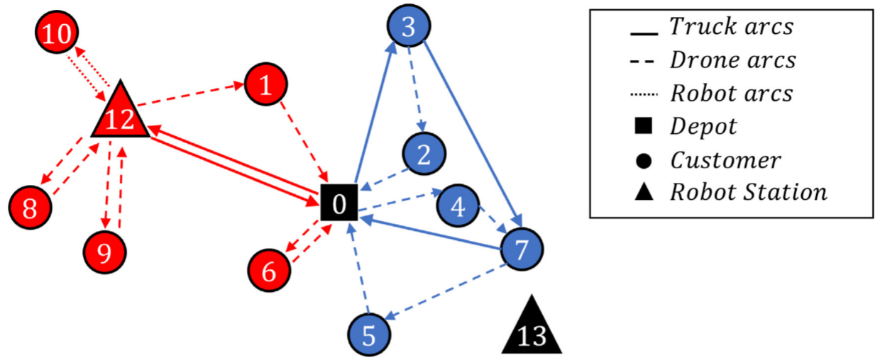 2.带有机器人站点的无人机辅助车辆路径规划问题