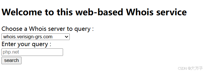 $output = shell_exec("/usr/bin/whois -h ${host} ${query}");