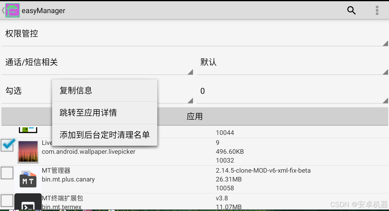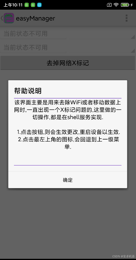 工作原理借鉴了Shizuku、AppOps、Hail等一众优秀开源软件,与它们两个类似,easyManager也需要引导用户执行一段命令,启动一个单独的后台进程到shell或者root shell里面,才能正常工作. 与它们不同的是,easyManager是通过Socket进行TCP通信,发送对应的操作指令和参数来执行对应的操作,一切的操作都在单独的一个shell里面执行,你可以随时停用它.