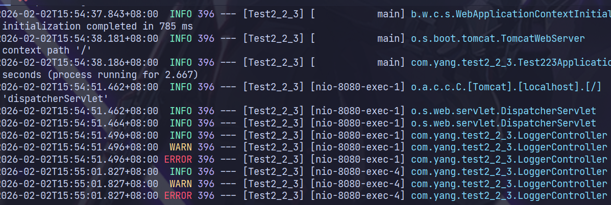 | 6 | 日志内容 | 开发者自定义或框架自动生成的具体日志信息,记录程序运行细节或错误描述 |